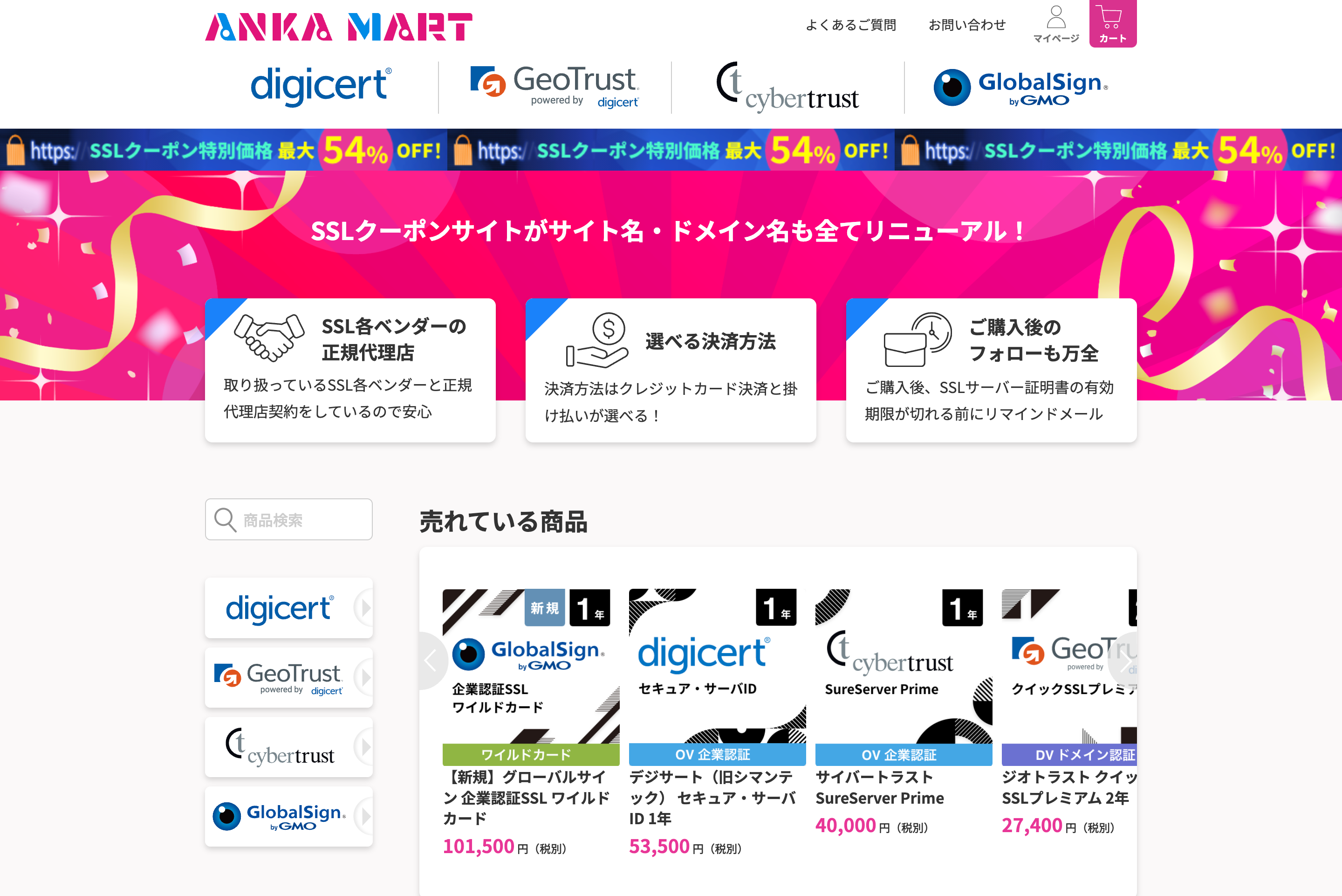 現在はSSLクーポンのみのお取り扱いですが、今後はWeb制作に必要なソフトウェアやPC・周辺機器など順次取扱い商材を拡充していく予定です。