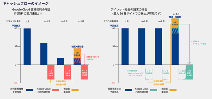 システム・アプリケーションの開発、グラフィック・UI/UX デザイン制作からインフラの構築・運用までをワンストップで提供するアイレット株式会社(本社:東京都港区、代表取締役社長:岩永充正、以下 アイレット)は、経済産業省が主導する国内の生成 AI 基盤モデル開発力強化プロジェクト「GENIAC」へ第2期での参画を検討する事業者に向けて、Google Cloud と連携した支援を開始することを発表します。Google Cloud における技術支援に加え、補助金サイクルを加味した支払い条件で契約が可能となることで、お客様はキャッシュフローが悪化するリスクを軽減することができます。
