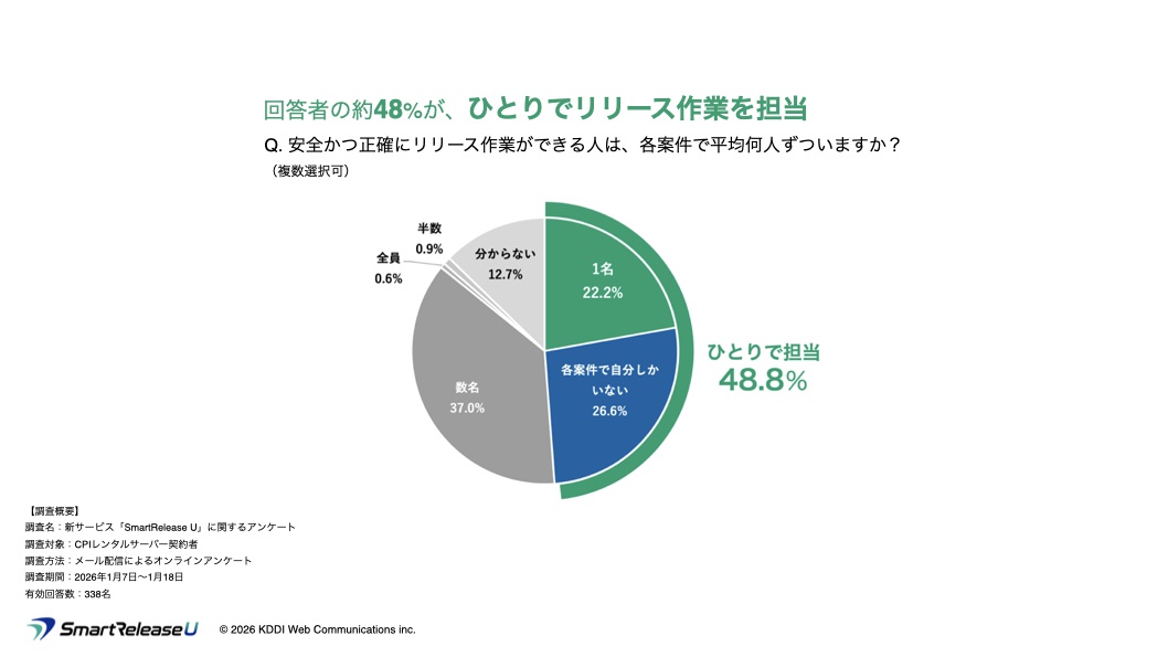 - 回答者の約48%が、ひとりでサイトリリース作業を担当